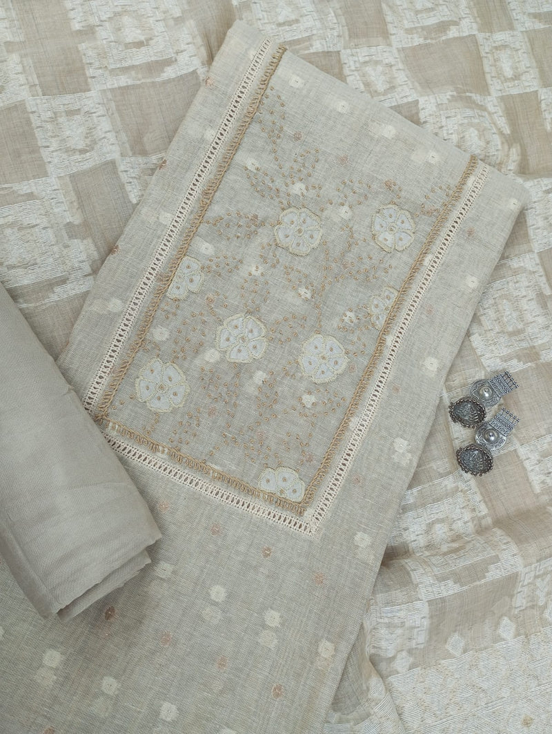 - TYPE OF WORK: Kurta Highlighted With Embroidered Neck Work, With Pant And Self woven Dupatta.
