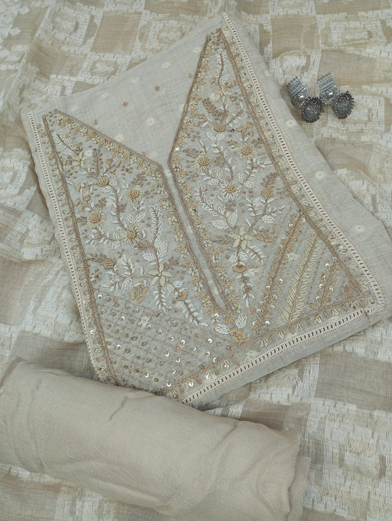 - TYPE OF WORK: Kurta Highlighted With Embroidered Neck Work, With Pant And Self woven Dupatta.