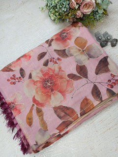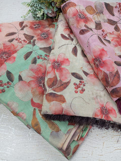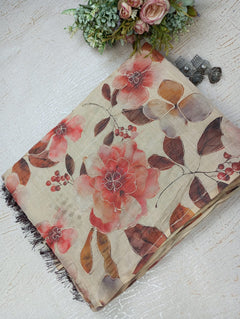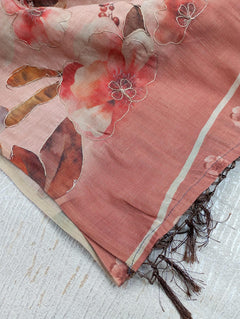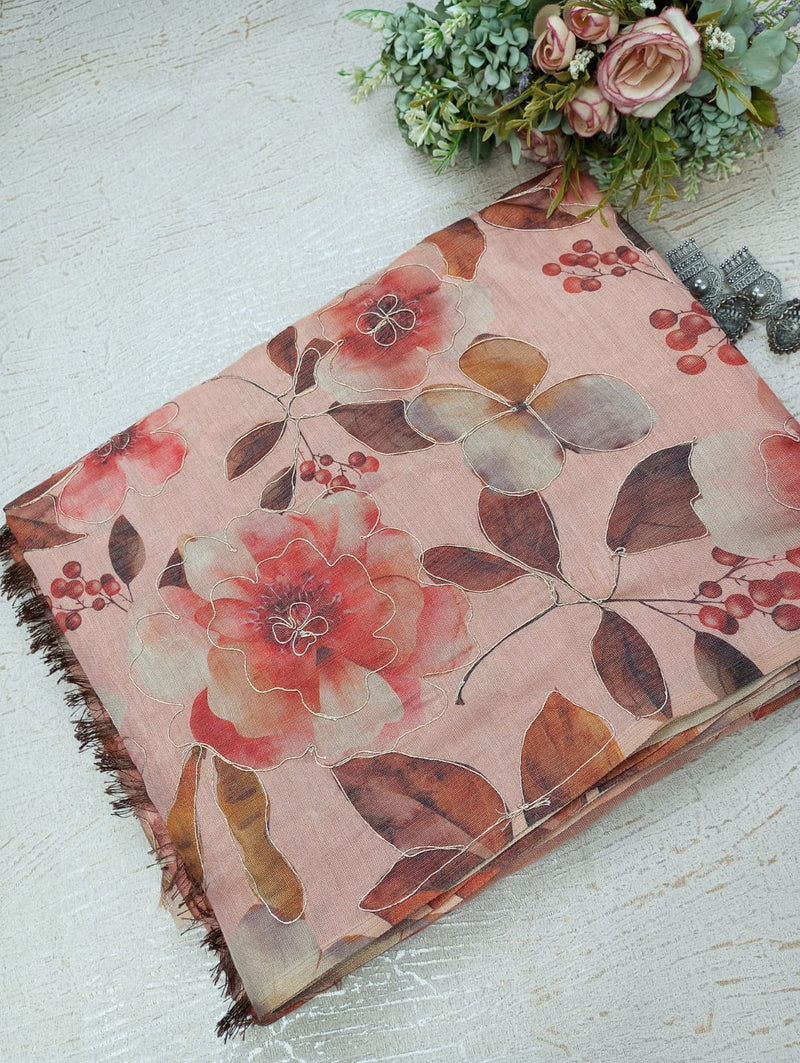 Bring effortless elegance to your wardrobe with this Linen Tissue Saree, beautifully detailed with delicate Aari embroidery and soft floral prints, perfect for festive occasions or elegant daywear. Comes with a unstitched blouse piece for a complete look.