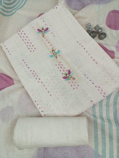 Linen Cotton Printed Kurta Highlighted With Neck Work, With unstitched Pant and Linen Cotton Printed Dupatta. Comfortable Festive Wear Look.