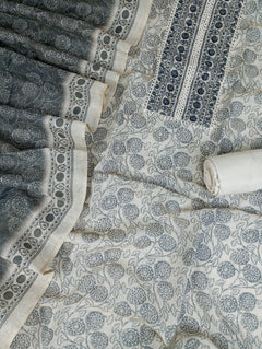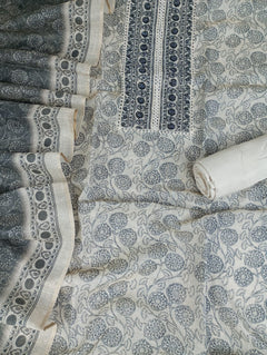 Linen Cotton Printed Kurta Highlighted With Neck Work, With Pant And Linen Cotton Printed Dupatta. Comfortable Festive Wear Look.