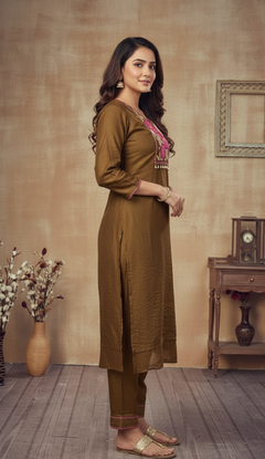 - TYPE OF WORK: Kurta highlighted with neck work, With pant.