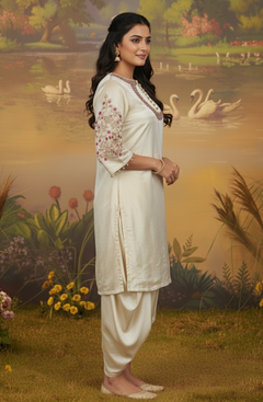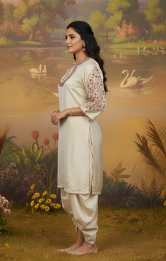 - TYPE OF WORK: Kurta highlighted with neck work, with heavy Sleeve. And Farshi Salwar.