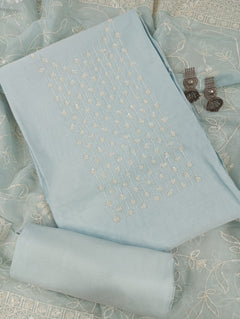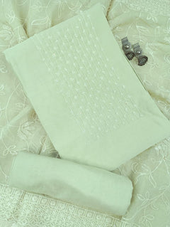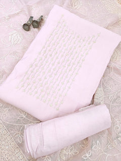 Soft Mull Chanderi Kurta Set beautifully adorned with delicate thread embroidery on the front panel. Paired with a matching cotton Bottom and an embroidered Chanderi Dupatta featuring fine lace detailing. Perfect for an elegant, minimal, and comfortable festive or casual look.